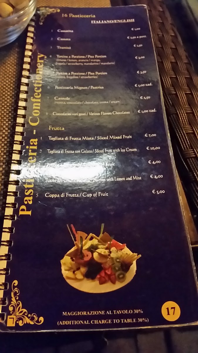 This menu suits moments when you want to savor something cooling and refreshing, especially during warm afternoons or while enjoying the gentle sea breeze nearby. Whether it’s a sweet granita tasting or a simple aperitivo alla frutta, the food and drinks enhance the laid-back atmosphere created by the shaded outdoor seating and views of the Milazzo gulf.